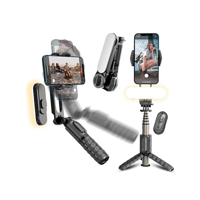 Koscheal 1-Axis Smartphone Gimbal Selfie Stick with Fill Light & Remote